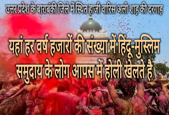 उत्तर प्रदेश के बाराबंकी जिले में स्थित हाजी वारिस अली शाह की दरगाह : यहां हर वर्ष हजारों की संख्या में हिंदू-मुस्लिम समुदाय के लोग आपस में होली खेलते है