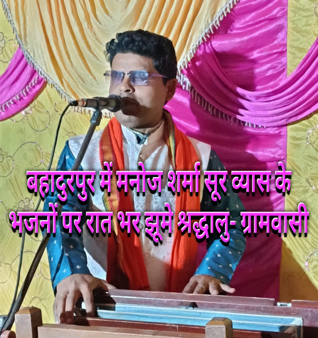 बहादुरपुर में मनोज शर्मा सूर व्यास के भजनों पर रात भर झूमे श्रद्धालु / ग्रामवासी।